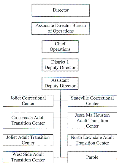SUBTITLE D: CODE DEPARTMENTS CHAPTER VII: DEPARTMENT OF CORRECTIONS PART 850 PUBLIC INFORMATION, RULEMAKING AND ORGANIZATION SECTION 850.TABLE I BUREAU OF OPERATIONS, DISTRICT 1 ORGANIZATION Section 850.TABLE I Bureau of Operations, District 1 Organization