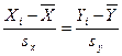The following formula is used for z-score equating.