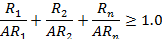 I. If multiple sources of the same radionuclide and/or multiple radionuclides are aggregated at a location, the sum of the ratios of the total activity of each of the radionuclides shall be determined to verify whether the activity at the location is less than the category 1 or category 2 thresholds of Table 1, as appropriate. If the calculated sum of the ratios, using the equation below, is greater than or equal to 1.0, then the applicable requirements apply.