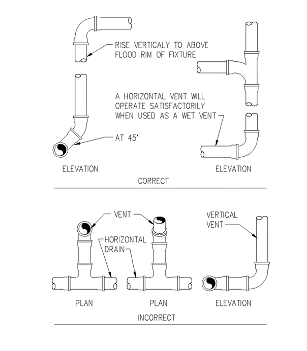 Section 890.ILLUSTRATION AA Right and Wrong Vent Connections