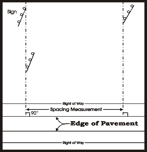 CHAPTER I: DEPARTMENT OF TRANSPORTATION SUBCHAPTER f: HIGHWAYS PART 522 CONTROL OF OUTDOOR ADVERTISING ADJACENT TO PRIMARY AND INTERSTATE HIGHWAYS SECTION 522.ILLUSTRATION E SPACING MEASUREMENT AT RIGHT ANGLE Section 522.ILLUSTRATION E Spacing Measurement At Right Angle