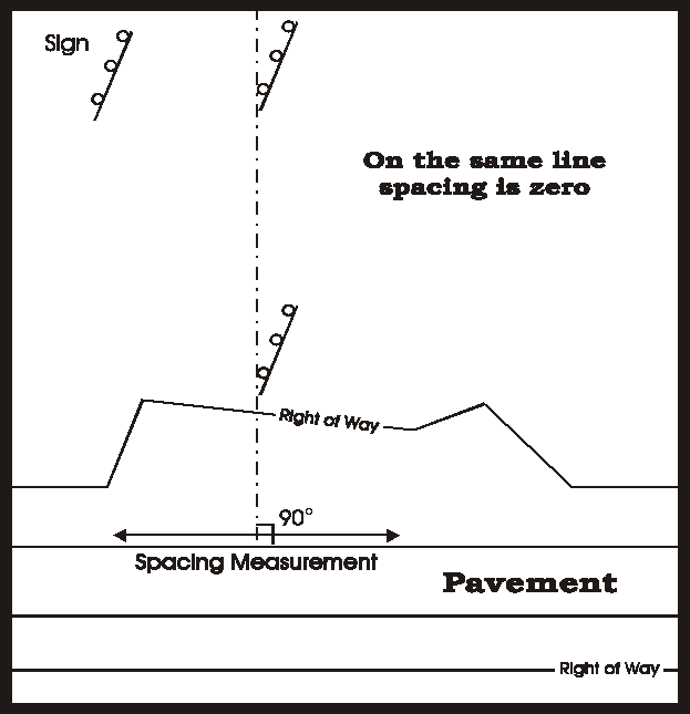 CHAPTER I: DEPARTMENT OF TRANSPORTATION SUBCHAPTER f: HIGHWAYS PART 522 CONTROL OF OUTDOOR ADVERTISING ADJACENT TO PRIMARY AND INTERSTATE HIGHWAYS SECTION 522.ILLUSTRATION F SPACING MEASUREMENT ON SAME LINE Section 522.ILLUSTRATION F Spacing Measurement On Same Line