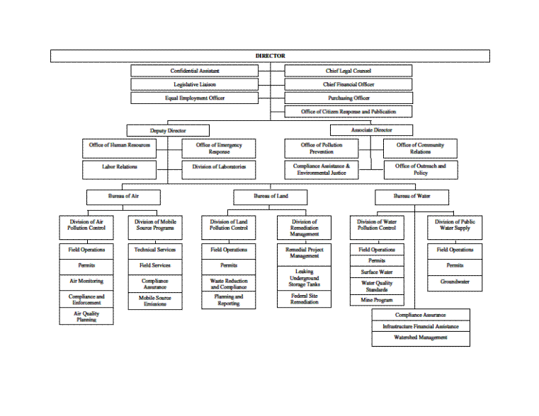 SUBTITLE E: MISCELLANEOUS STATE AGENCIES CHAPTER XIV: ENVIRONMENTAL PROTECTION AGENCY PART 1825 PUBLIC INFORMATION, RULEMAKING AND ORGANIZATION SECTION 1825.ILLUSTRATION A ORGANIZATION CHART OF THE ILLINOIS ENVIRONMENTAL PROTECTION AGENCY Section 1825.ILLUSTRATION A Organization Chart of the Illinois Environmental Protection Agency